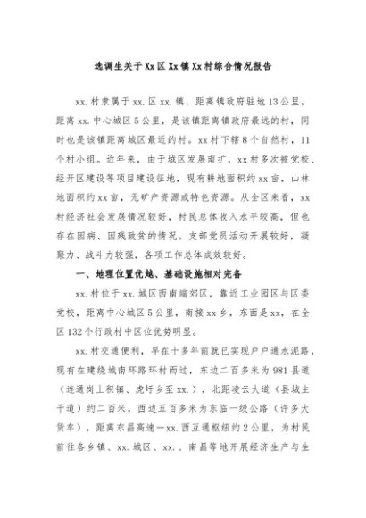 / 【七哥公文】2024年:选调生关于Xx区Xx镇Xx村综合情况报告+更多免费公文+VX:QiGeGongWen2024