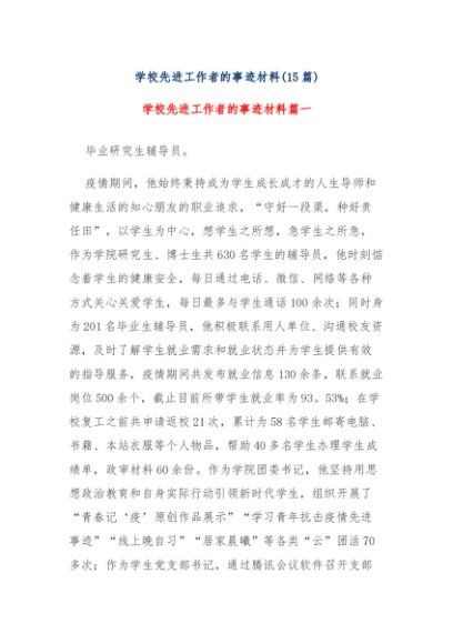 / 【七哥公文】2024年:(15篇)学校先进工作者的事迹材料+更多免费公文+VX:QiGeGongWen2024