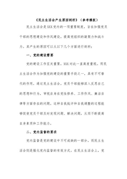 【七哥公文】2024年:《民主生活会产生原因剖析》(参考模板)+更多免费公文+VX:QiGeGongWen2024