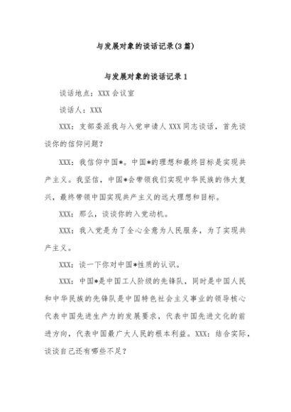 【七哥公文】2024年:(3篇)与发展对象的谈话记录+更多免费公文+VX:QiGeGongWen2024