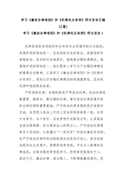 【七哥公文】2024年:(2篇)学习《廉洁自律准则》和《纪律处分条例》研讨发言汇编+更多免费公文+VX:QiGeGongWen2024