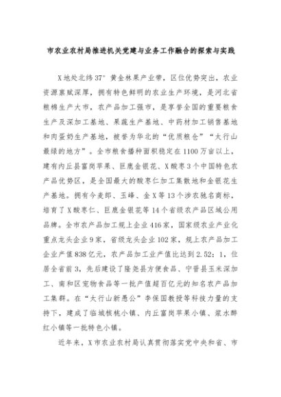 【七哥公文】2024年:市农业农村局推进机关党建与业务工作融合的探索与实践+更多免费公文+VX:QiGeGongWen2024