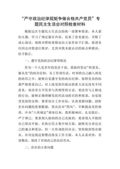 【七哥公文】2024年:“严守政治纪律规矩争做合格共产党员”专题民主生活会对照检查材料+更多免费公文+VX:QiGeGongWen2024