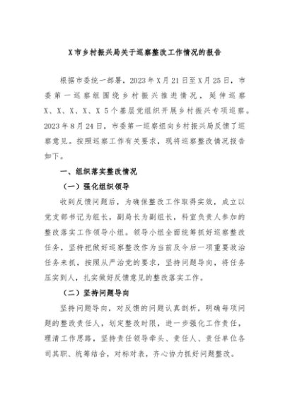 / 【七哥公文】2024年:X市乡村振兴局关于巡察整改工作情况的报告+更多免费公文+VX:QiGeGongWen2024