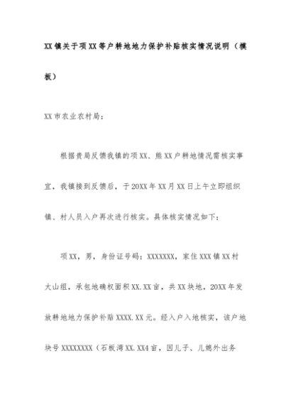 【七哥公文】2024年:XX镇关于项XX等户耕地地力保护补贴核实情况说明+更多免费公文+VX:QiGeGongWen2024