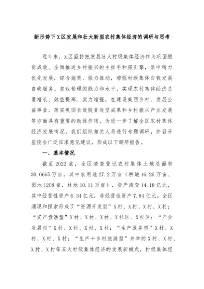 【七哥公文】2024年:新形势下X区发展和壮大新型农村集体经济的调研与思考+更多免费公文+VX:QiGeGongWen2024