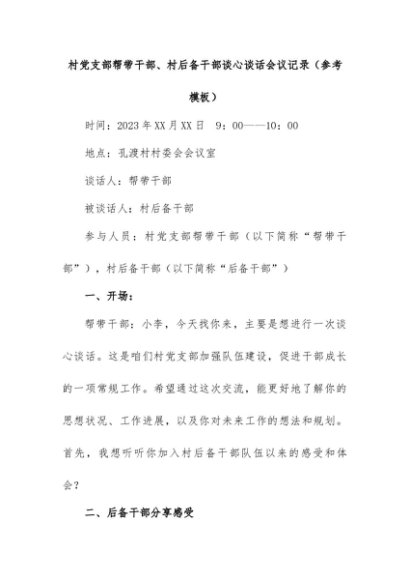 / 【七哥公文】2024年:村党支部帮带干部,村后备干部谈心谈话会议记录+更多免费公文+VX:QiGeGongWen2024