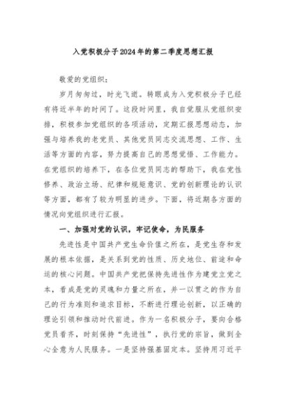 / 【七哥公文】2024年:入党积极分子2024年的第二季度思想汇报+更多免费公文+VX:QiGeGongWen2024