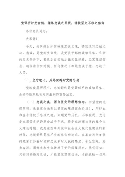 【七哥公文】2024年:党课研讨发言稿:锤炼忠诚之品质,铸就坚定不移之信仰+更多免费公文+VX:QiGeGongWen2024