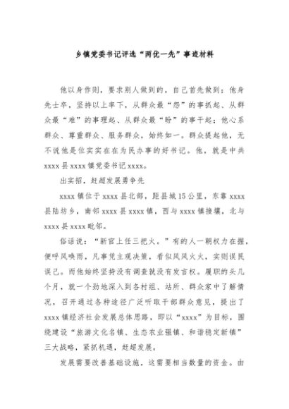 / 【七哥公文】2024年:乡镇党委书记评选“两优一先”事迹材料+更多免费公文+VX:QiGeGongWen2024