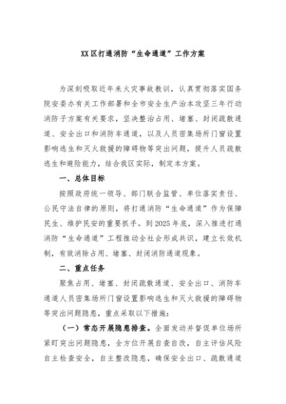/ 【七哥公文】2024年:XX区打通消防“生命通道”工作方案+更多免费公文+VX:QiGeGongWen2024
