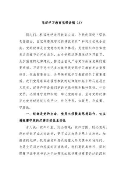 / 【七哥公文】2024年:党纪学习教育党课讲稿(3)+更多免费公文+VX:QiGeGongWen2024