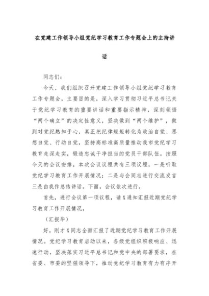 【七哥公文】2024年:在党建工作领导小组党纪学习教育工作专题会上的主持讲话+更多免费公文+VX:QiGeGongWen2024