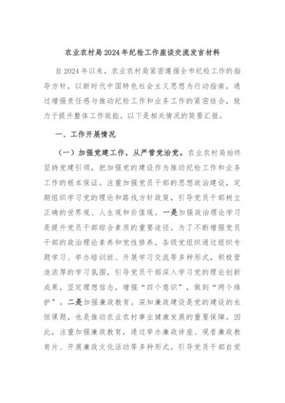/ 【七哥公文】2024年:农业农村局2024年纪检工作座谈交流发言材料+更多免费公文+VX:QiGeGongWen2024
