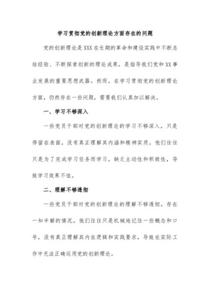 【七哥公文】2024年:学习贯彻党的创新理论方面存在的问题+更多免费公文+VX:QiGeGongWen2024