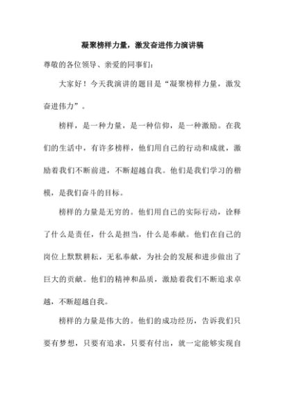 / 【七哥公文】2024年:凝聚榜样力量,激发奋进伟力演讲稿+更多免费公文+VX:QiGeGongWen2024