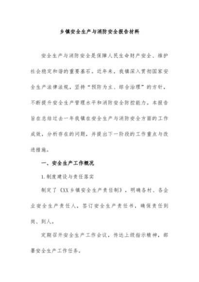 / 【七哥公文】2024年:乡镇安全生产与消防安全工作报告+更多免费公文+VX:QiGeGongWen2024