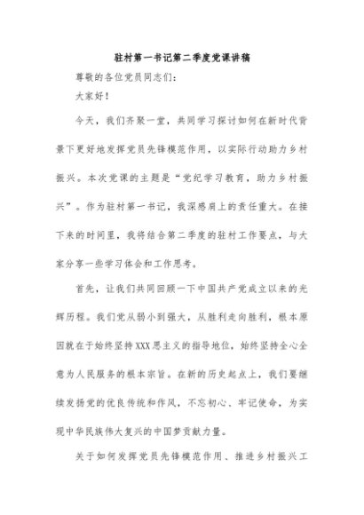 / 【七哥公文】2024年:党纪学习教育为主题的驻村工作队第二季度党课讲稿+更多免费公文+VX:QiGeGongWen2024