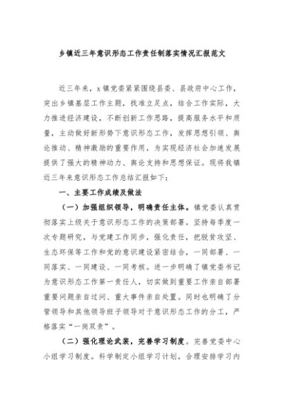 / 【七哥公文】2024年:乡镇近三年意识形态工作责任制落实情况汇报范文+更多免费公文+VX:QiGeGongWen2024