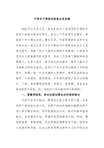/ 【七哥公文】2024年:中青年干部培训班结业发言稿+更多免费公文+VX:QiGeGongWen2024