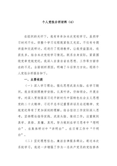 / 【七哥公文】2024年:个人党性分析材料(4)+更多免费公文+VX:QiGeGongWen2024