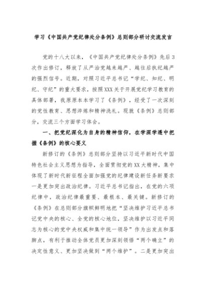 【七哥公文】2024年:学习《中国共产党纪律处分条例》总则部分研讨交流发言+更多免费公文+VX:QiGeGongWen2024