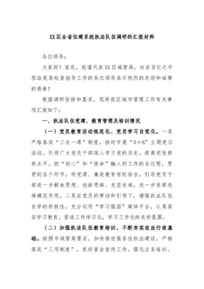 / 【七哥公文】2024年:XX区全省住建系统执法队伍调研的汇报材料+更多免费公文+VX:QiGeGongWen2024