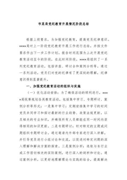 / 【七哥公文】2024年:市某局党纪教育开展情况阶段总结+更多免费公文+VX:QiGeGongWen2024