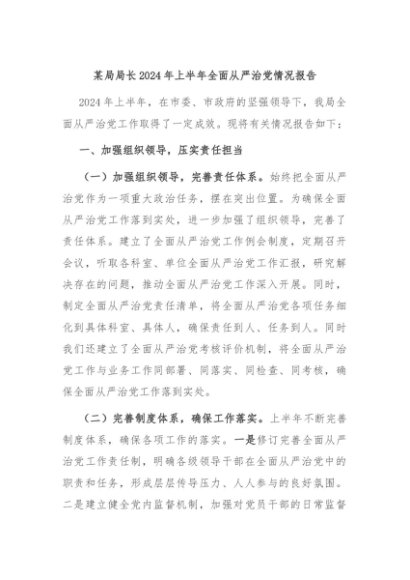 / 【七哥公文】2024年:某局局长2024年上半年全面从严治党情况报告+更多免费公文+VX:QiGeGongWen2024