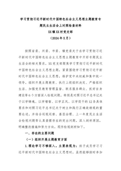 / 【七哥公文】2024年:XX村学习新时代主题教育班子对照材料+更多免费公文+VX:QiGeGongWen2024