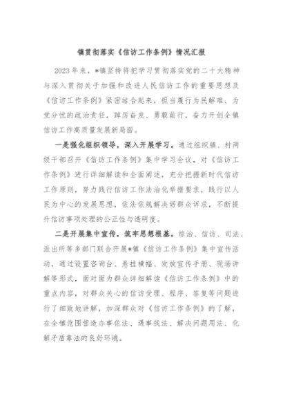 / 【七哥公文】2024年:镇贯彻落实《信访工作条例》情况汇报+更多免费公文+VX:QiGeGongWen2024