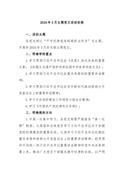 / 【七哥公文】2024年:2024年5月主题党日活动安排+更多免费公文+VX:QiGeGongWen2024