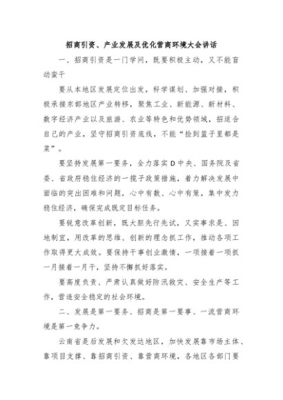 / 【七哥公文】2024年:招商引资、产业发展及优化营商环境大会讲话 (1)+更多免费公文+VX:QiGeGongWen2024