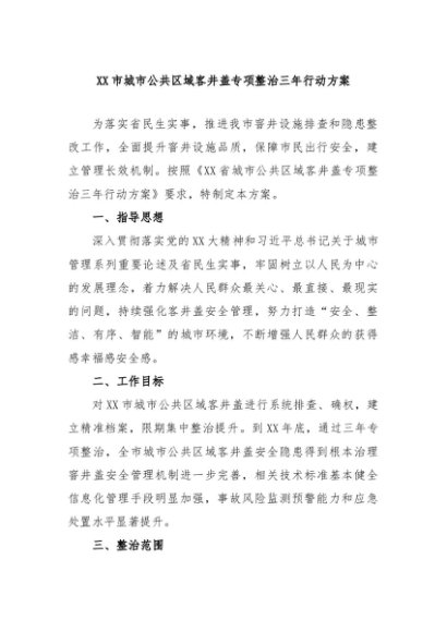【七哥公文】2024年:XX市城市公共区域客井盖专项整治三年行动方案+更多免费公文+VX:QiGeGongWen2024
