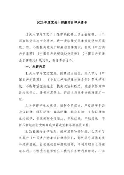 / 【七哥公文】2024年:2024年度党员干部廉洁自律承诺书+更多免费公文+VX:QiGeGongWen2024