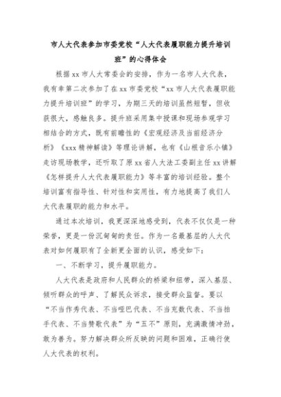 【七哥公文】2024年:市人大代表参加市委党校“人大代表履职能力提升培训班”的心得体会+更多免费公文+VX:QiGeGongWen2024