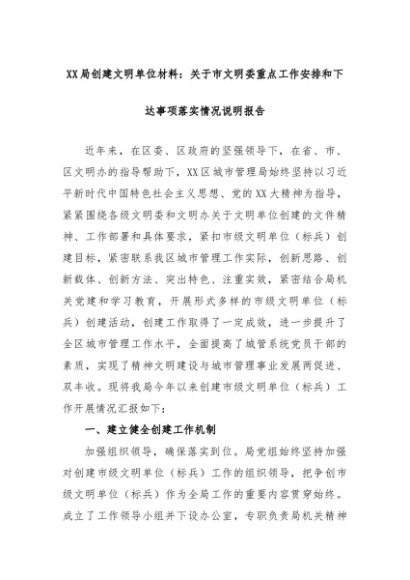 【七哥公文】2024年:XX局创建文明单位材料:关于市文明委重点工作安排和下达事项落实情况说明报告+更多免费公文+VX:QiGeGongWen2024