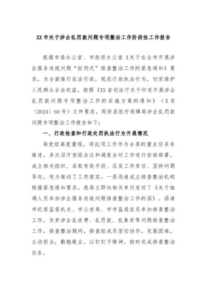 【七哥公文】2024年:XX市关于涉企乱罚款问题专项整治工作阶段性工作报告+更多免费公文+VX:QiGeGongWen2024