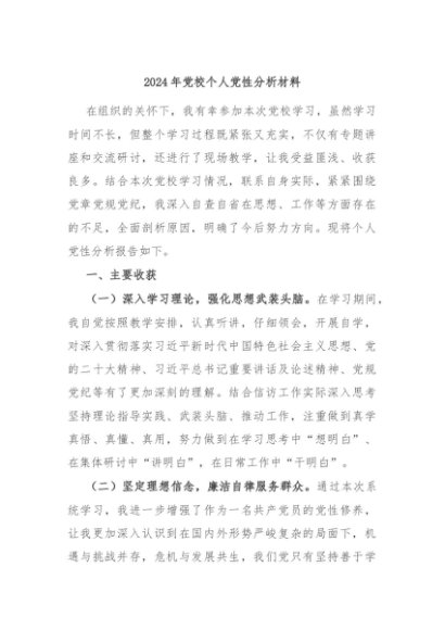 / 【七哥公文】2024年:2024年党校个人党性分析材料+更多免费公文+VX:QiGeGongWen2024