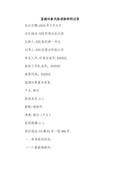 【七哥公文】2024年:(2篇)监测对象风险消除研判记录+更多免费公文+VX:QiGeGongWen2024