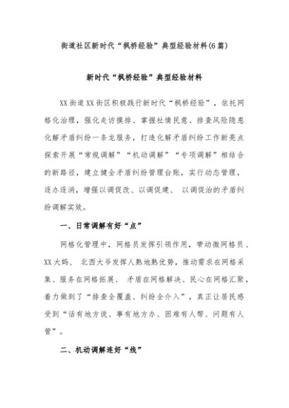 / 【七哥公文】2024年:(6篇)街道社区新时代“枫桥经验”典型经验材料+更多免费公文+VX:QiGeGongWen2024