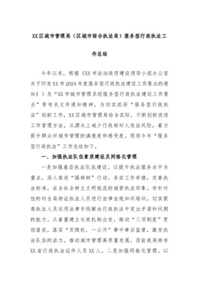 【七哥公文】2024年:XX区城市管理局(区城市综合执法局)服务型行政执法工作总结+更多免费公文+VX:QiGeGongWen2024