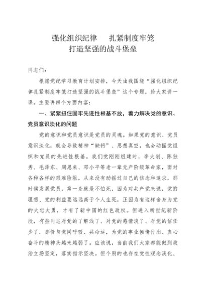【七哥公文】2024年:专题党课强化组织纪律扎紧制度牢笼打造坚强的战斗堡垒+更多免费公文+VX:QiGeGongWen2024