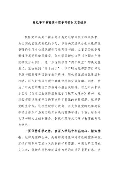 / 【七哥公文】2024年:党纪学习教育读书班学习研讨发言提纲+更多免费公文+VX:QiGeGongWen2024