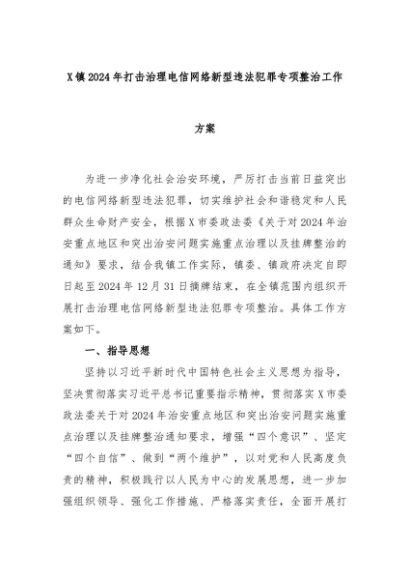 【七哥公文】2024年:X镇2024年打击治理电信网络新型违法犯罪专项整治工作方案+更多免费公文+VX:QiGeGongWen2024