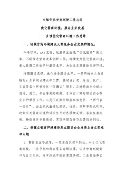 / 【七哥公文】2024年:乡镇优化营商环境工作总结+更多免费公文+VX:QiGeGongWen2024