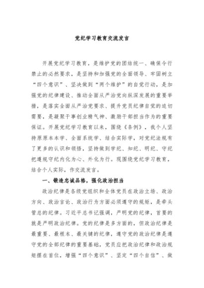 / 【七哥公文】2024年:党纪学习教育交流发言+更多免费公文+VX:QiGeGongWen2024