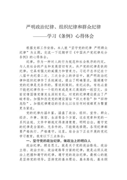 【七哥公文】2024年:严明政治纪律、组织纪律和群众纪律——学习《条例》心得体会+更多免费公文+VX:QiGeGongWen2024