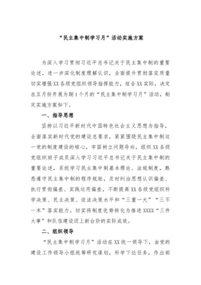 【七哥公文】2024年:“民主集中制学习月”活动实施方案+更多免费公文+VX:QiGeGongWen2024