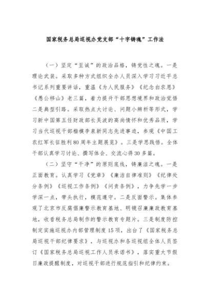 / 【七哥公文】2024年:国家税务总局巡视办党支部“十字铸魂”工作法+更多免费公文+VX:QiGeGongWen2024